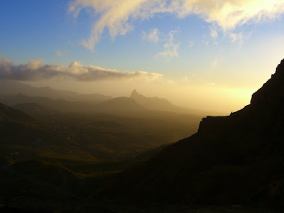 No primeio passeio para fora da cidade, depois de um óptimo pequeno almoço no "Pão Quente" - comi um excelente Bolo Rei, acabadinho de fazer... - esperava-me a grande surpresa de uma paisagem cheia de montanhas e de picos elevadíssimos, autênticas agulhas implantadas no verde das últimas chuvas - é São Domingos, Rui Vaz e o Pico da Antónia, a quase 1400 metros de altitude, a Sintra cá do sítio...